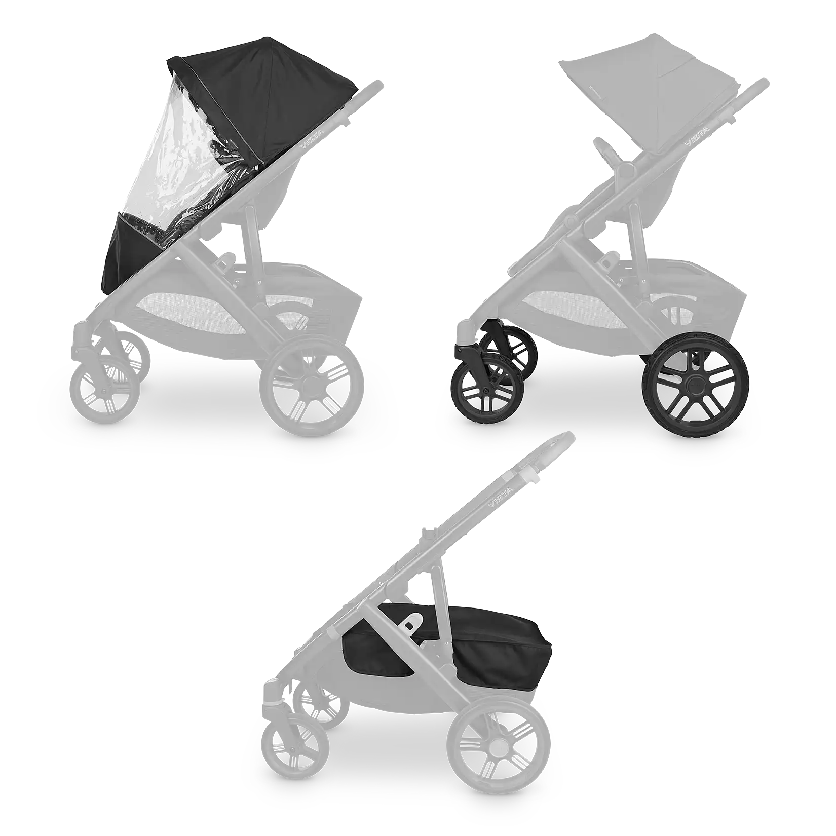From rainy strolls to weekend hikes, this bundle transforms your Vista into a year-round ride. With enhanced wheel treads, full rain protection, and covered storage, you’re ready to roll through any season.