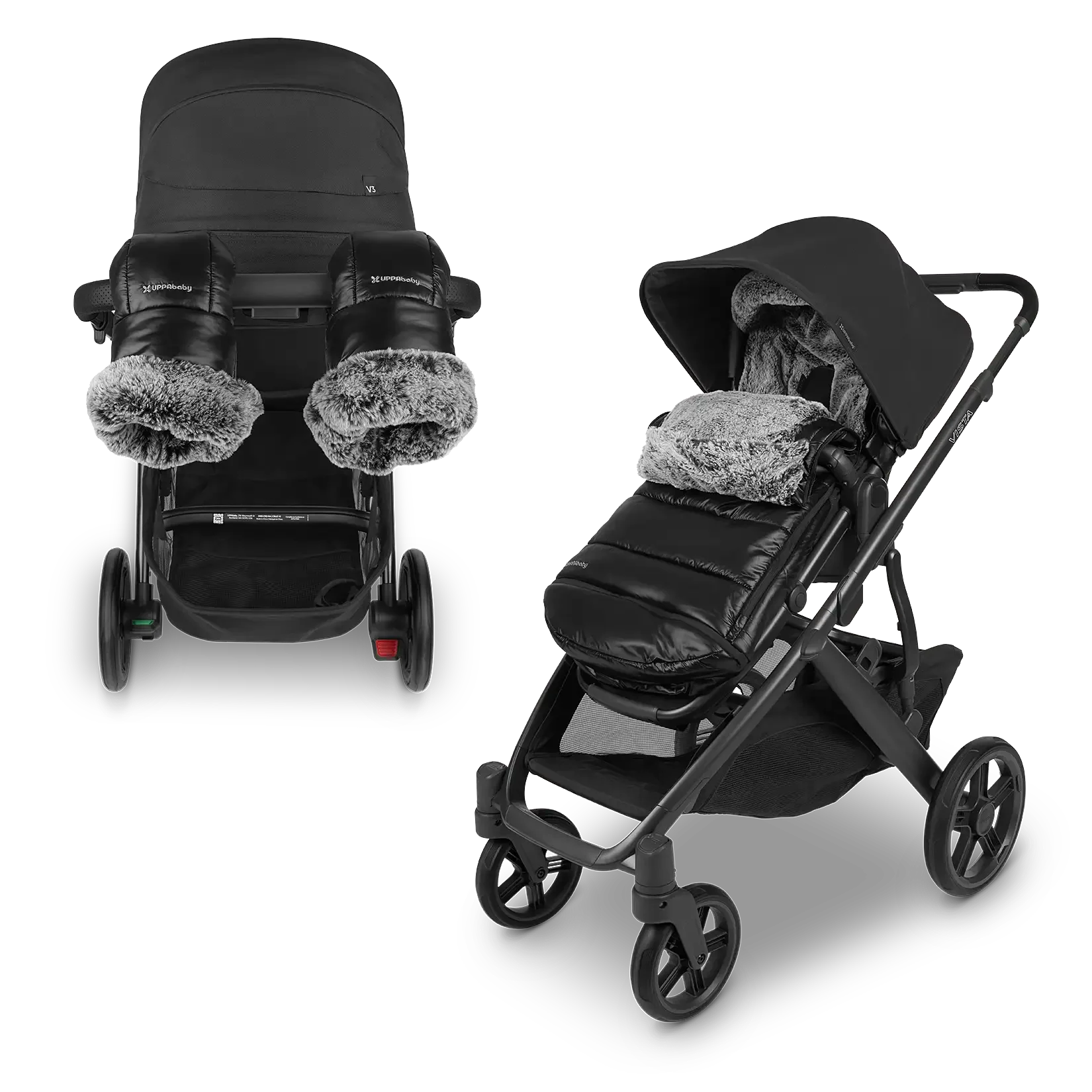 This premium cold-weather set pairs the CozyGanoosh Luxe footmuff with the CozyHandmuffs Luxe, delivering total warmth for baby and parents alike. Thoughtfully designed with plush fabrics, weatherproof layers, and refined details, it’s the ultimate seasonal duo for sleek winter strolls.