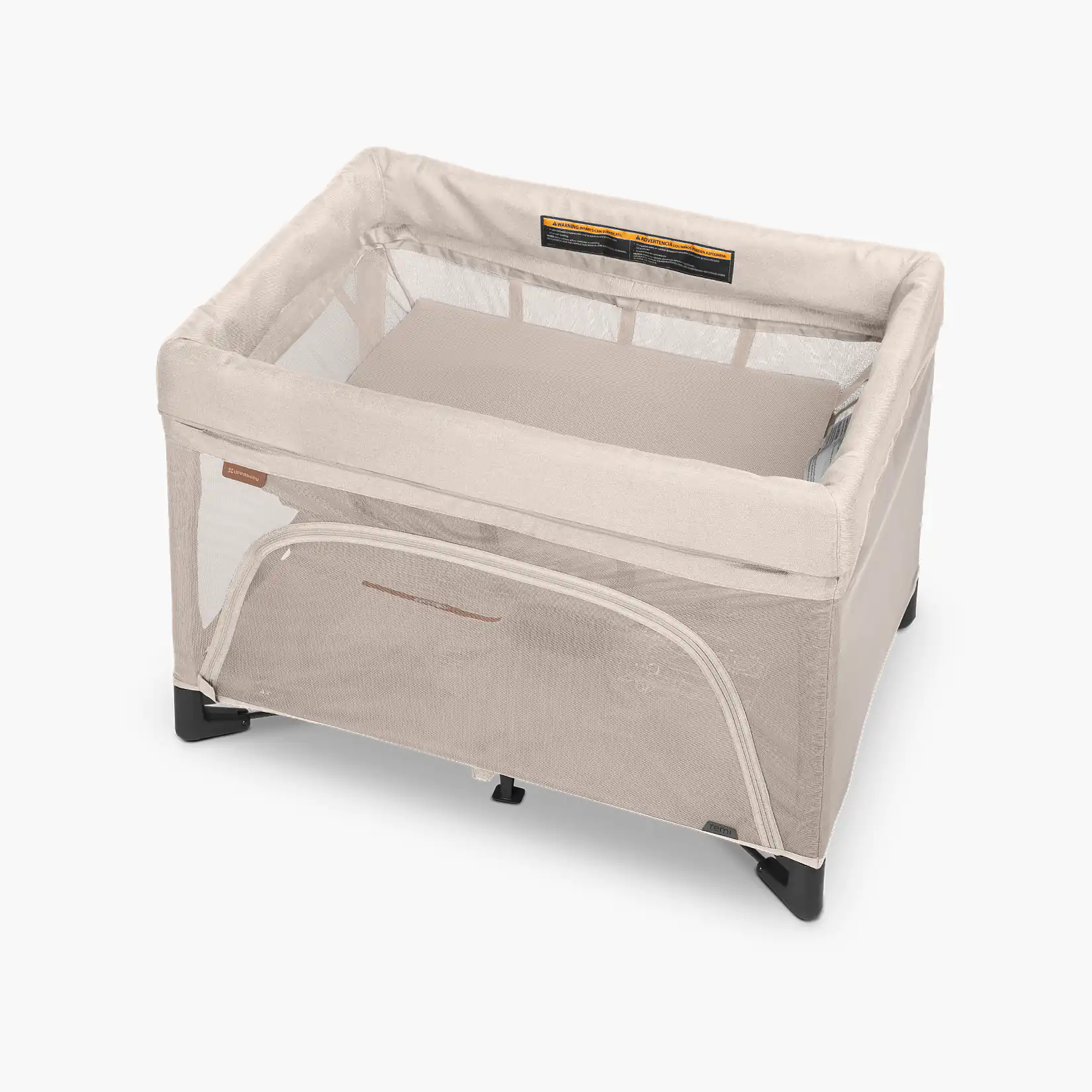 Remi’s ventilation benefits support infant rest and health, from those first days laying directly on its mattress to later, more adventurous stages. Simply zip on the included mesh bassinet for a newborn bedside solution, and zip it off when baby is older or needs a safe play space.