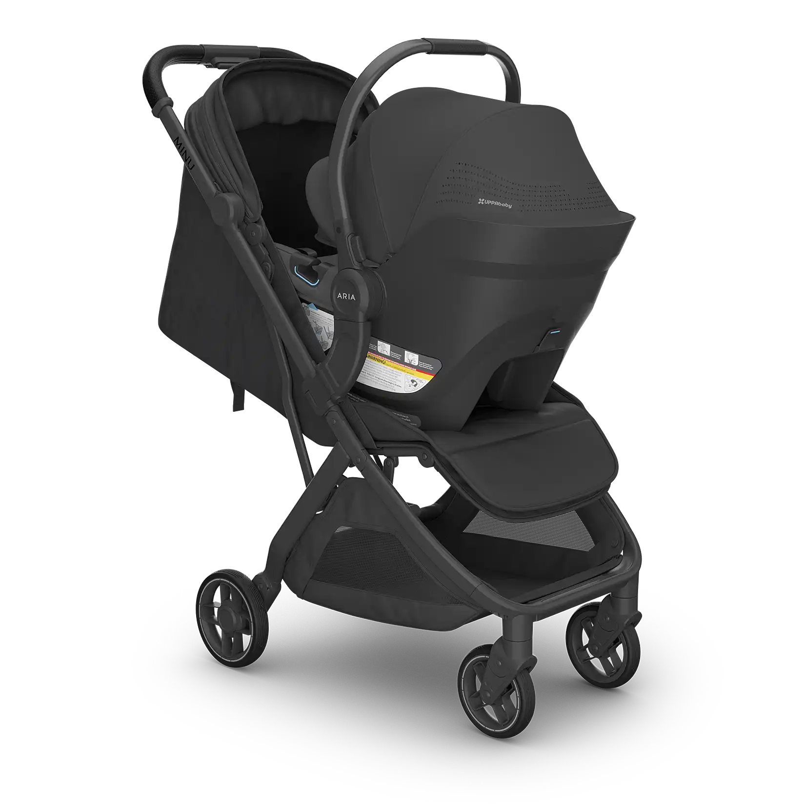 The Aria V2 Car Seat attaches to the Minu V3 Stroller with the addition of convenient adapters to create a stylish and simple solution that goes from drive to stroll.
